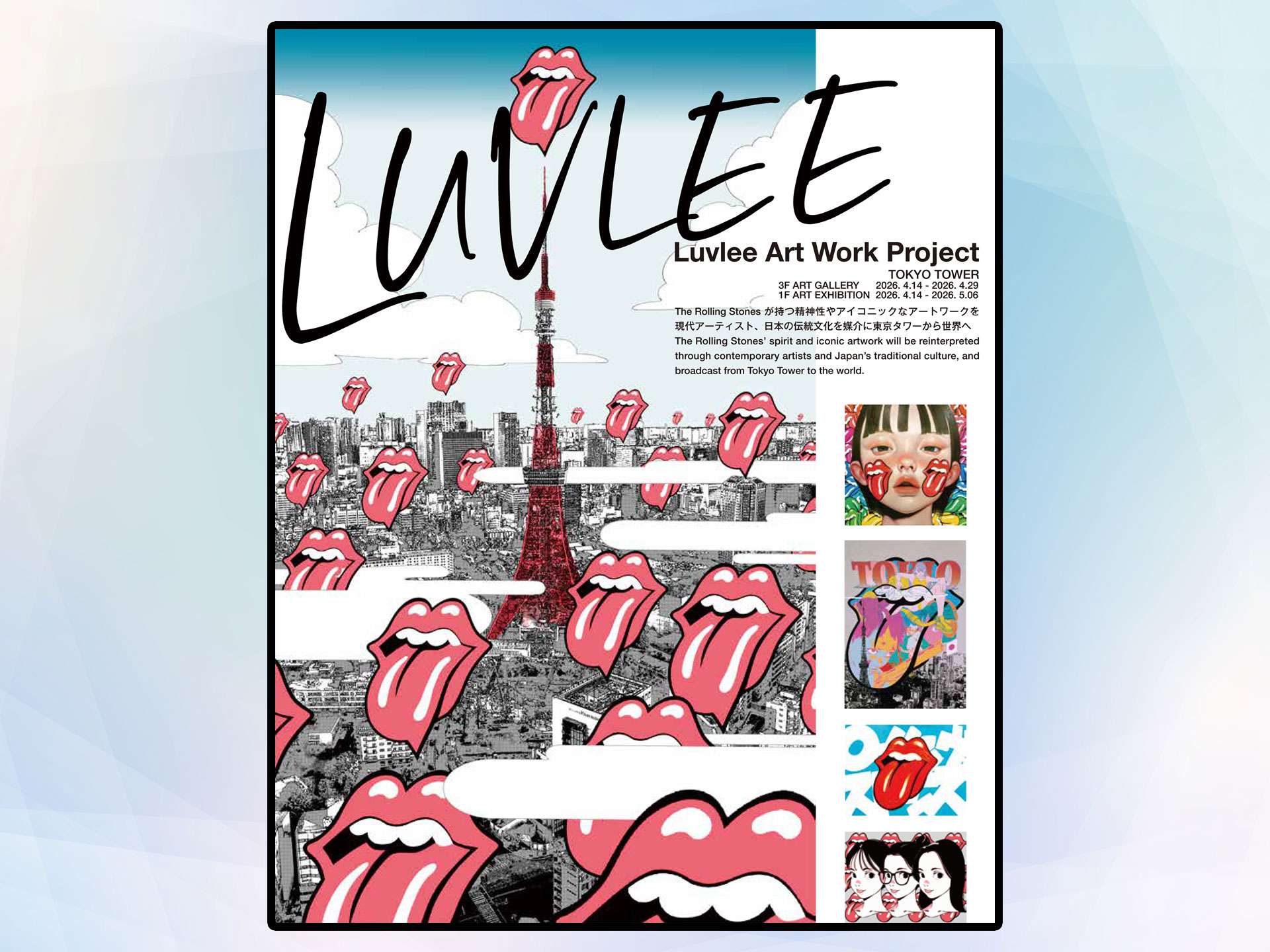 RED° TOKYO TOWER 1階展示スペースでは「LuvLEE ART EXHIBITION」として、公式マーチャンダイズの販売とアーティストによるコラボレーションアート展示を中心に展開します。会場ではTシャツなどの公式マーチャンダイズに加え、西陣織などを用いた伝統工芸とのコラボレーショングッズも販売予定。音楽、アート、伝統文化が交差する新たな文化体験を提供します。